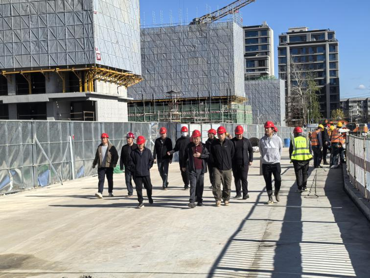 检查组一行实地查看了东地块施工进度与现场管理情况,重点检查了基坑支护、防水材料成品保护、动火作业及消防设施配置等关键环节。赵长松详细询问了假期施工安排及应急预案准备情况,并对现场安全防护措施落实进行了督导。