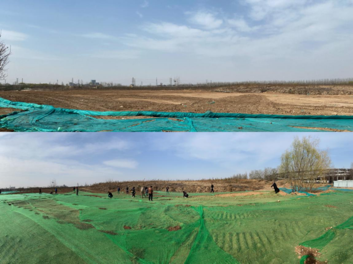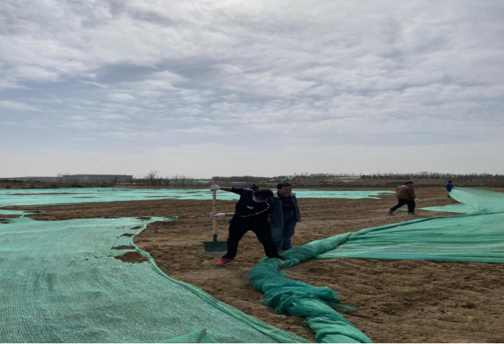 此次活动共分俩组,每组7人,由项目部副经理刘涛带头,大家带起手套,伴随着扬沙四起的恶劣环境,开启为期两天的苫盖工作。青年职工们团结一致,发扬不怕苦不怕累的精神,两天时间共苫盖35350平方米,让工地旧貌换新颜。